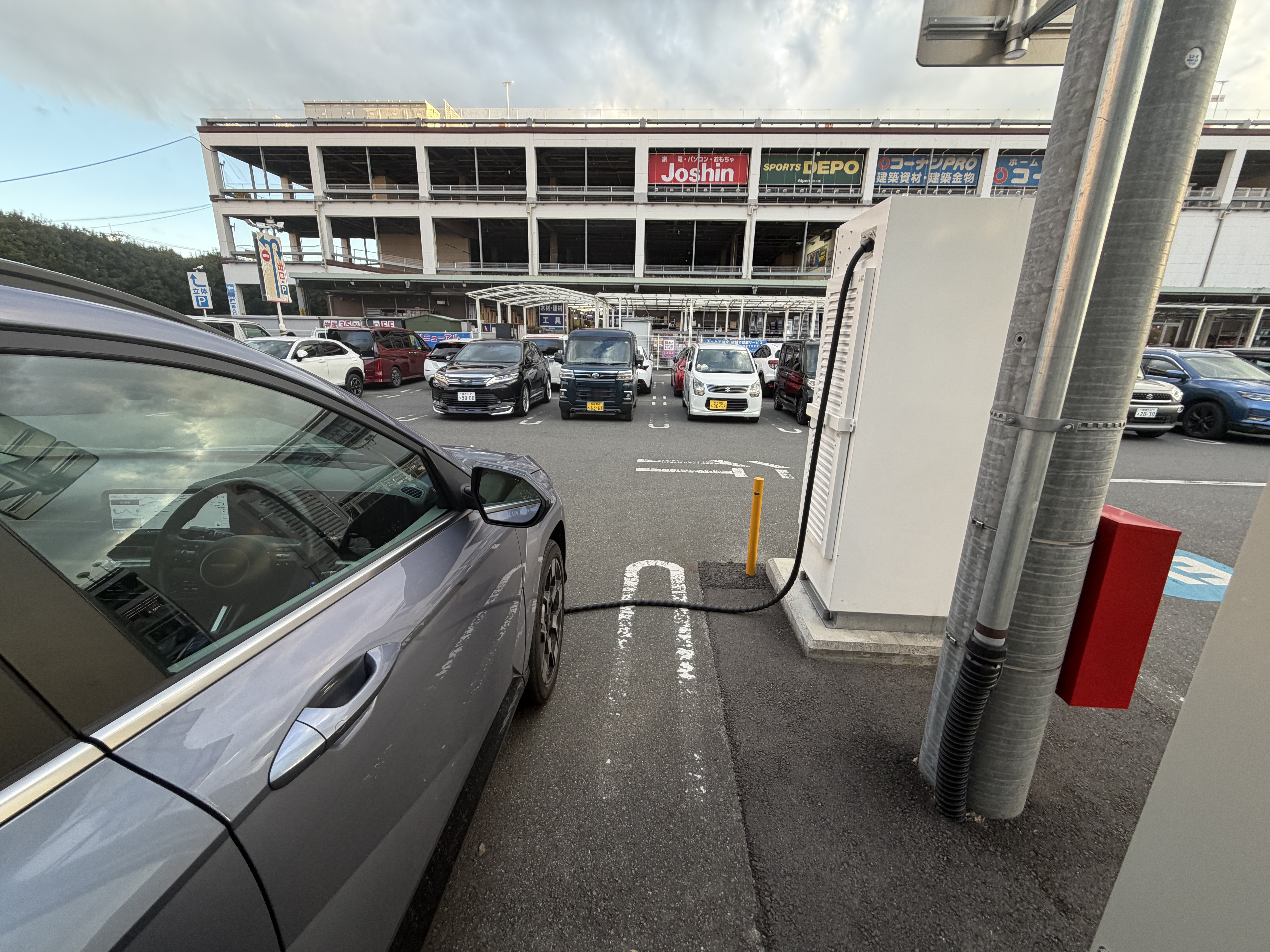 厚木の急速充電器が2基4口に大幅改善!ですが、一般車が場所を塞いで停めづらい。