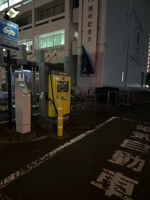 日産製44kW充電器です。日産テクニカルセンター行きの従業員バスの一角に設置されてます。R246走行してるとすぐ見えます。ただし、休止中の張り紙ありました。