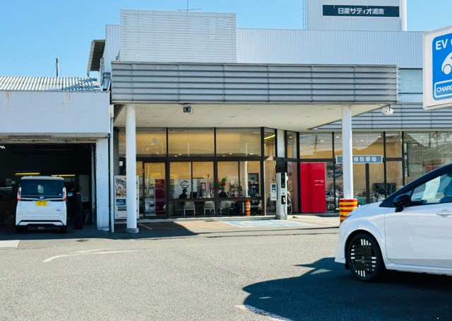 R246近く妻田中村交差点角の日産サティオ湘南 厚木店に設置されてます急速充電器です。