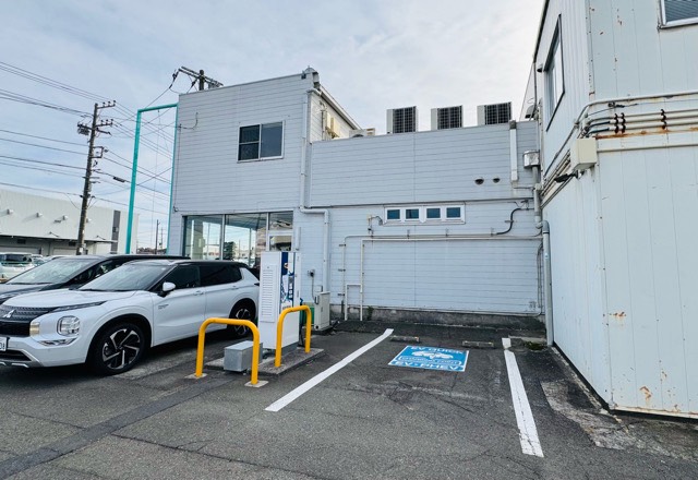 (株)東光高岳製50kW器です。前から駐車する車両は、充電後切返し要注意です。敷地狭いです。