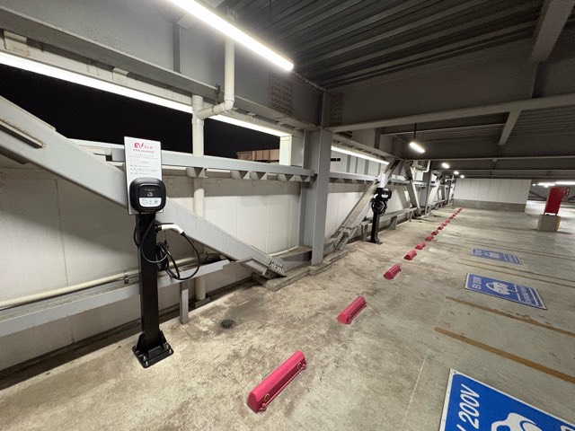 ENECHANGE認証 Zerovo Technologies製6kW器×6器です。立体駐車場5階北西部に設置されてます。コーンあるのでガソリン車は泊まってないです。平地駐車場出入口付近にあった普通充電器からの代替ですね!