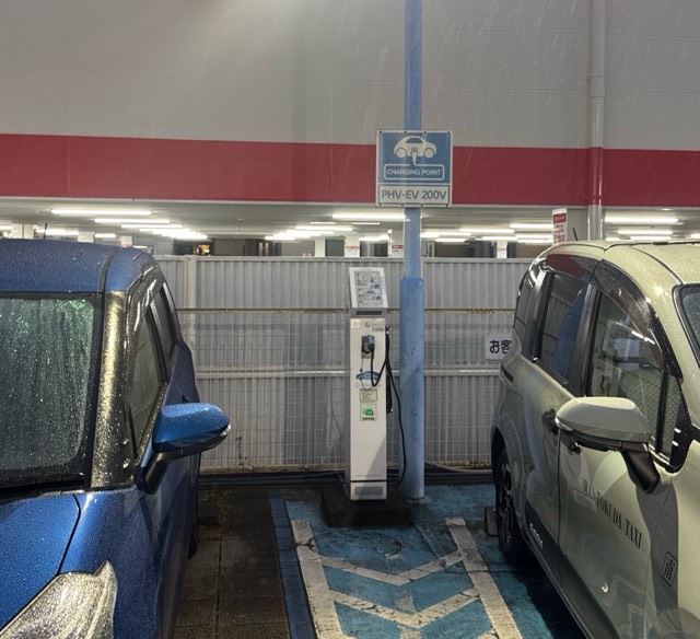トヨタメディアサービス(株)製3.2kW普通充電器です。販社敷地入り、左手奥の駐車枠に設置されてます。営業時間内で使用可能です。