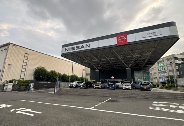 中原街道沿いの日産工機南門前にあります日産神奈川販売 寒川店の急速充電器です。日産工機の警備員さんが誘導してくれました。