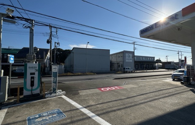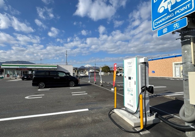 設置場所:国道255号線沿いの入口から入って、立体駐車場のスロープ前、国道沿いの車室にEV充電器があります。 最大出力6kW