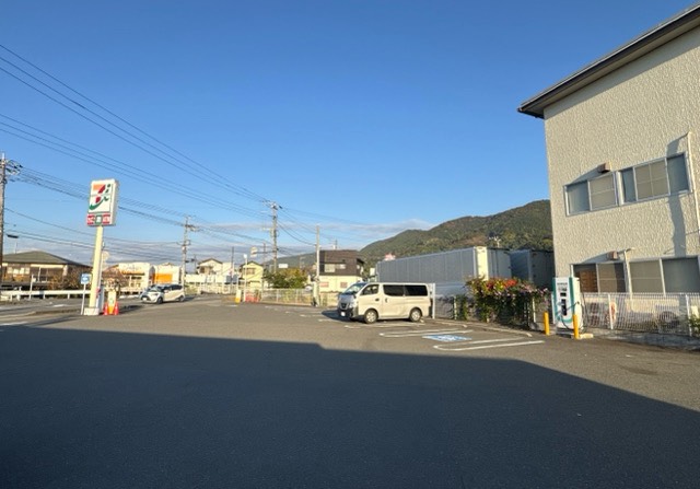 国道255号線沿いの東名高速道路入口手前にあります。 コンビニの駐車場ですが24時間営業ではないので、夜間早朝は注意が必要です。