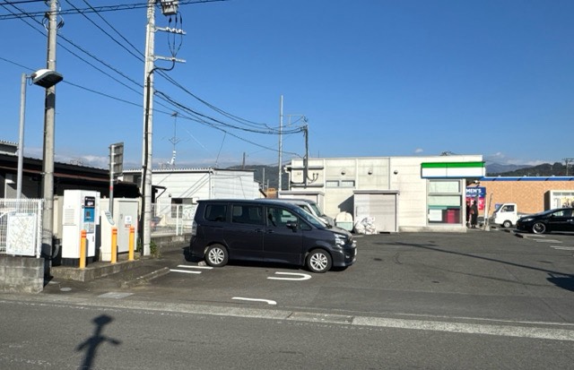 R255沿いのファミリーマート 大井町上大井店に設置されてます急速充電器です。駐車場南側端にあります。