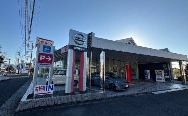 御殿場大井線沿い日産神奈川販売 開成店にある高速充電器です。店舗西側入り口、自販機隣に設置されてます。