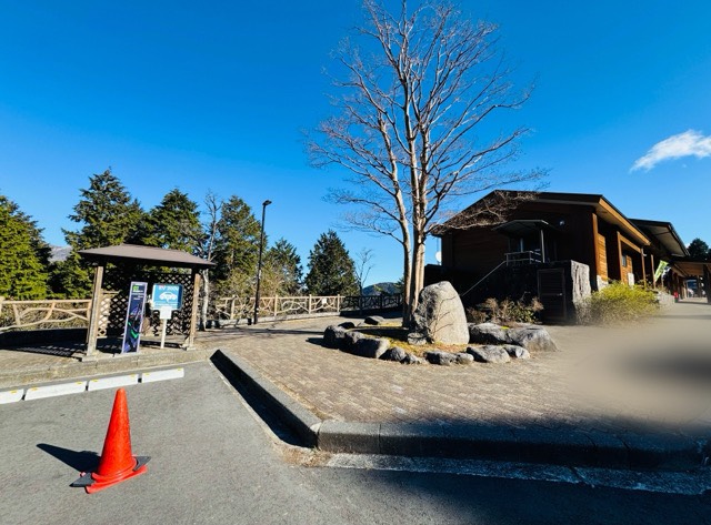 Panasonic製4kW普通充電器です。建物西側、芦ノ湖側に設置されてます。コーン設置されてるのでガソリン車の駐車はないですね。