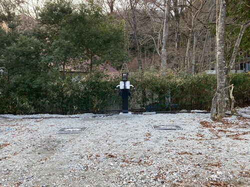 駐車場入って右手側に設置されています。 いつでも使用してください、とご丁寧に案内頂きました。 夜間は、表の門を閉めていることがあるので、その際はフロントまでご連絡くださいとの事です。