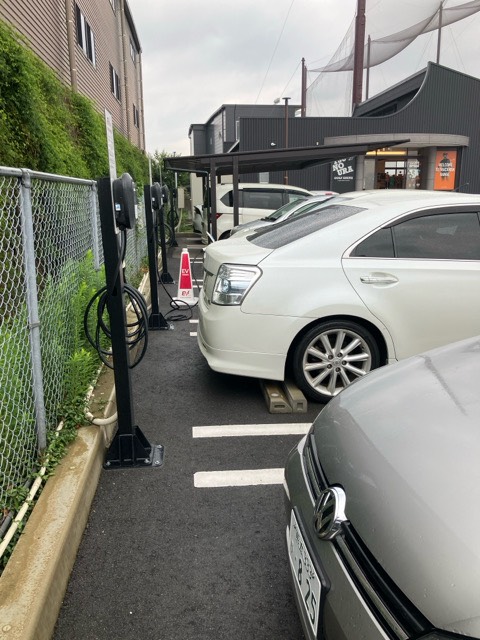 約1年間、ほぼガソリン車が駐車する状態が続いています。 せっかく4基設置されていても1基も使用できないのでは意味がありません…。 ようやく1基にはポールを置くようになったようですが、それでもそのほかにはガソリン車が止まります。 対策がなされないのはなぜでしょうか、、