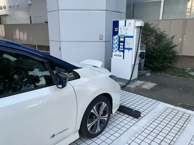 [急速充電器] 90kWの充電器が1基(2台同時に充電可)あります。 ★データチームより★ 最大出力90kWは、お車が対応しており、かつ1台で充電した場合の参考値です。 充電1回30分まで。 [普通充電器] コンセントは店舗の営業時間内のみお使いいただけます。 日産車限定。