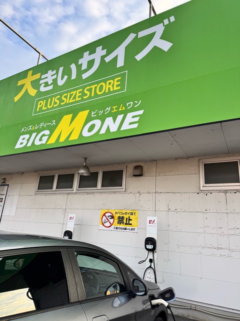 設置場所:国道3号(川尻バイパス)沿い、清藤歩道橋を通過後しばらくすると左手に「Let's リハ!/カラオケCLUB DAM 熊本南店」併設施設があり、隣接して「ビッグエムワン熊本富合店」があります。 道路沿い6台駐車スペース、間の車室にEV充電器があります。 最大出力6kW