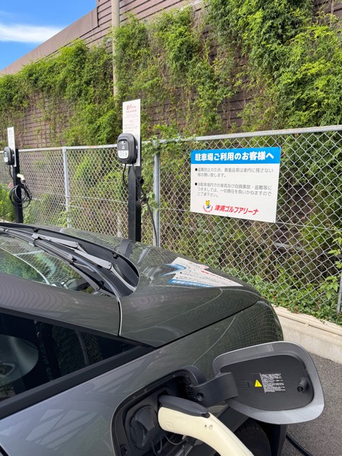 4機あるうち、2機分がガソリン車を停めてあり使えませんでした。ゴルフ練習場の入り口から近い場所にあるため、EV充電ではない車を停めてあることがあるようです。