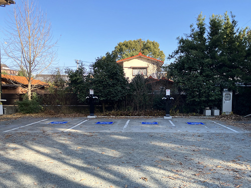 道路沿い6台駐車スペース、間の車室にEV充電器があります。