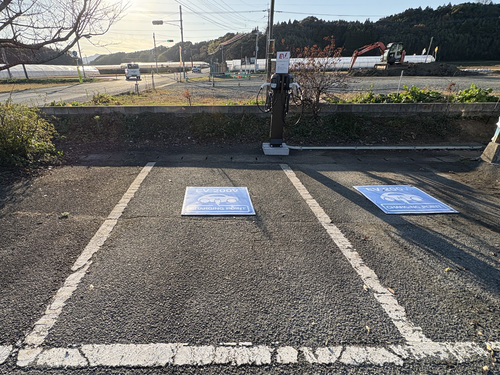 • こちらは2台の充電器ですが、幹線道路沿いにも関わらず埋まっていることはあまりありません! 近くに弁当屋さんがあるので、そちらで食事して待つのもありです。