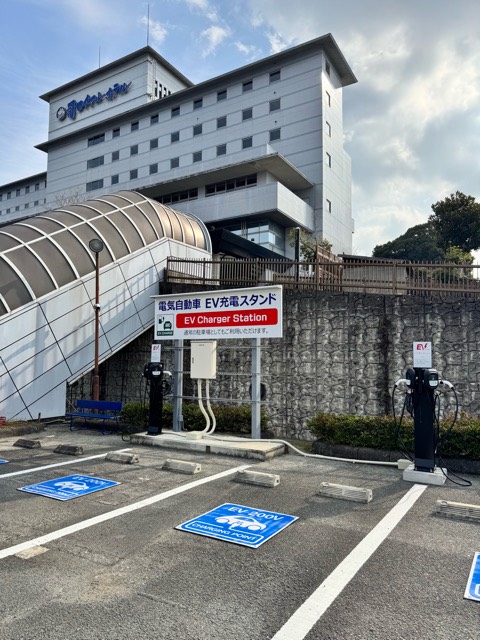 つかさの湯と司ホテルがありますが、ホテル側に4台分の充電器。ハッキリとEV スタンドと掲示があってわかりやすかったです!