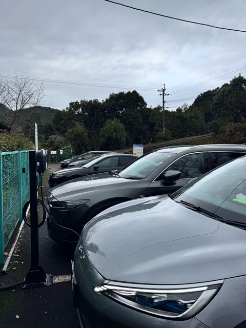 充電器は4台でしたが、一器分は一般の車両が停まっていました。 山奥ですが、すぐ隣にトイレはあるのでちょっと充電にはよいかと思います。