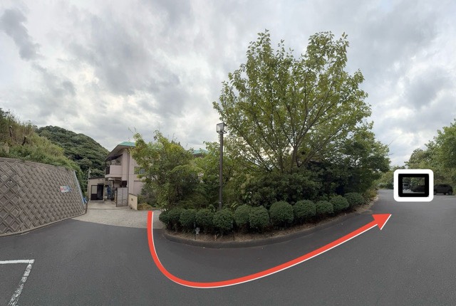 最初の駐車場エリアを越えるとさらに奥の左側に駐車場があります。その左奥にあります。