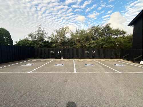 設置場所:駐車場敷地内、屋上駐車場に上がるスロープの下にある駐車スペース(平面1階)にEV充電器があります。 どなたでもご利用いただけます。 最大出力6kW