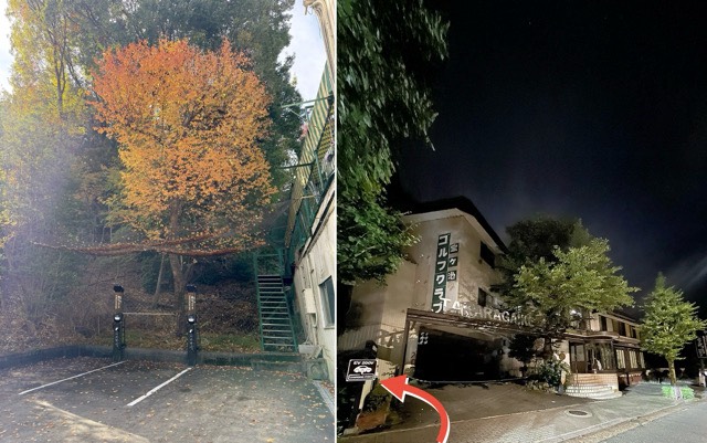 敷地に入って即左に曲がります。屋内に入る手前です。 敷地が狭いので展開する時など苦労します。 ただ、すごく紅葉は綺麗でした。