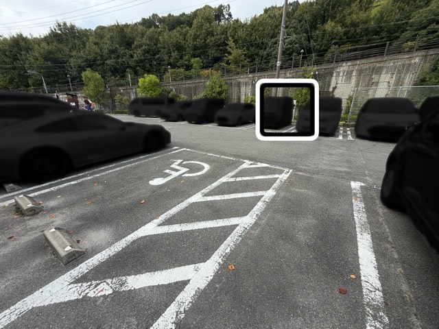 ゲートをくぐり右に進むと、右側のソーラーパネルを超えて左に「思いやり駐車場」の向かいのところにあります。