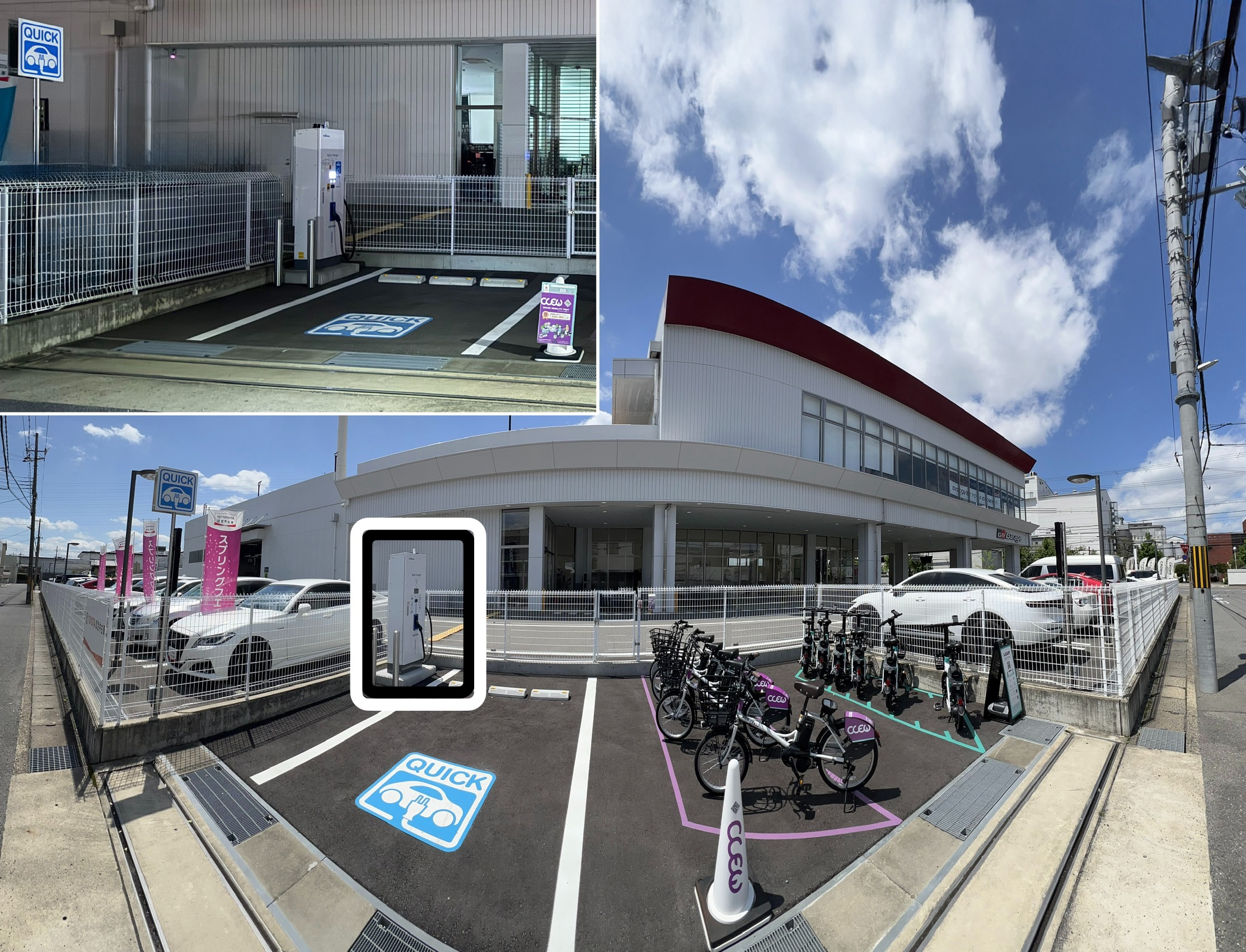 大通りから見て左側の道に曲がって進むと、トヨタの敷地側に凹んだくぼみにLUUPと共にあります。 24時間営業はありがたいですが、充電カードユーザーとしては少し使い難い充電器になりました。 この充電スポットとは関係ないですが、観光名所に、LUUPが併設されているようなレンタサイクルと(目的地)充電のコンビが増えてくれると嬉しいですね。