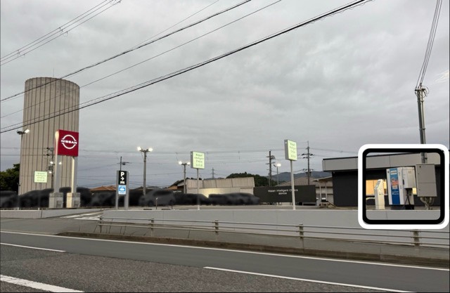 国道9号線福知山市街地方面沿いにあるので、入りやすい場所にあります。 ただ、直射日光がガッツリ当たる場所なので 夏場はバッテリーの温度に気をつける必要がありそうです。