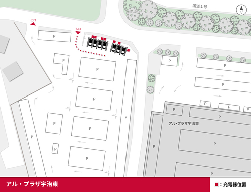 店舗営業時間に準ずる 設置場所:駐車場「D」エリアの入り口より敷地内へ入りすぐ左折し、直進すると左側の車室にEV充電器があります。 どなたでもご利用いただけます。 最大出力6kW 施設の電気容量により一時的に充電器の出力が変動する場合があります。