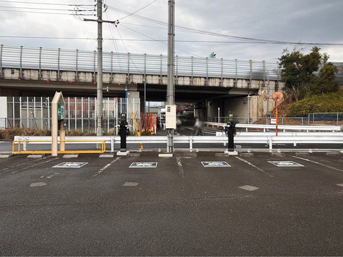 一号線側に三台あります。連絡不要です。 コーンなどは置いて無いですが、少し離れた場所なので普通車に取られる事は無さそうです。