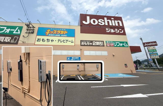 店舗入り口に向かって左側の壁にあります。文書と写真追加 このジョーシンにあるのはアプリも要らなくて、繋いで画面をワンタッチで使える便利な充電器です。