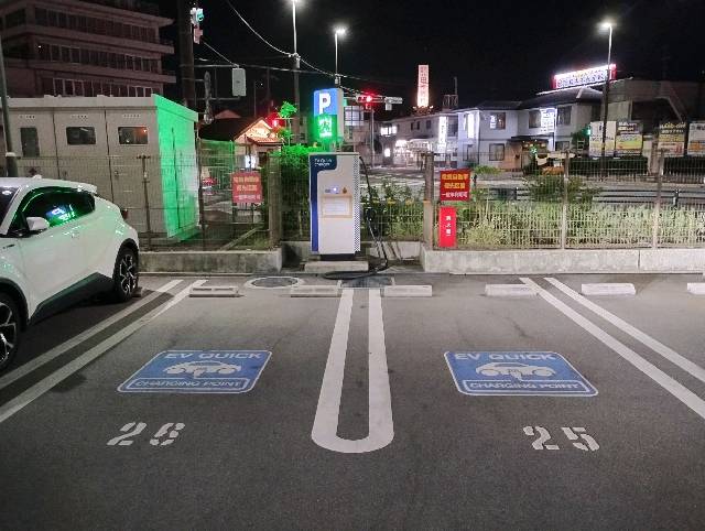 - 敷地に入って左側の25・26番車室の間にあります。 昨年はあった2つのコーンがなくなっています。1つはあった方が良いと思います。満車になるにしても最後までは空いていてほしいです。 それはともかく、新しい充電器になっているのにも関わらず無料なのはありがたいかとも思いますが、エコQ電などに対応していただいて、エネチェンジなどのアプリで満空情報が見れたりするととても助かります。