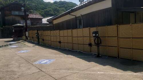 設置場所:「海花亭 花御前 西館」向かいにある駐車場に入り、左端の車室にEV充電器があります。 どなたでもご利用いただけます。 最大出力6kW