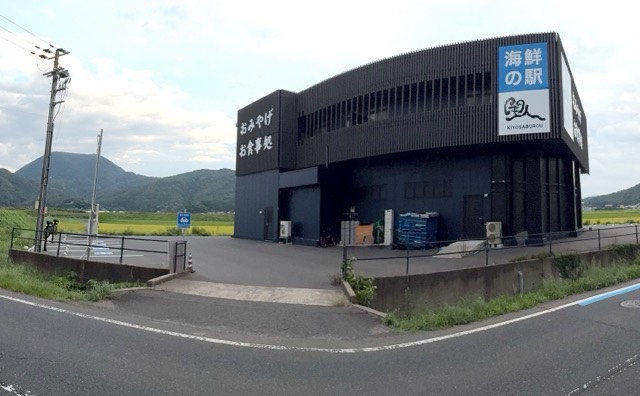 道路から見て左側の出入り口の近くにあります。 建物に、はっきりと名前がわかる感じではなかったので、「海鮮の駅 喜代三郎」みたいな名称に変更した方が良いかもしれません。