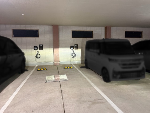 • 建物より奥に2つ目の駐車場のすぐ左にあります。充電の標識があるのですぐにわかると思います。