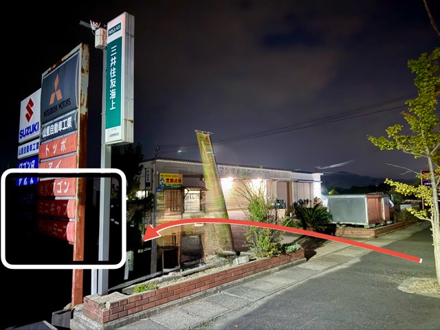 • 道路から入って、直ぐ左手、日産の看板の下に設置されています。