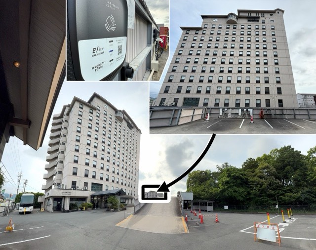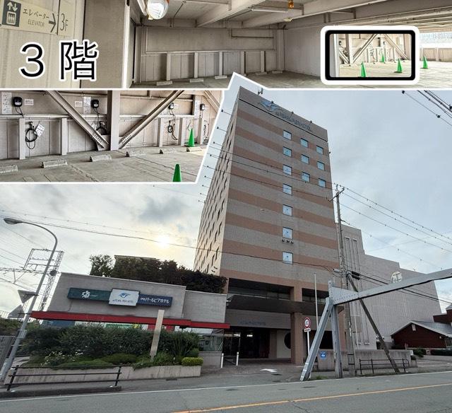 立体駐車場の3階にあります。文書と写真追加 立体駐車場にあるので、施設利用に関係ない場合には敷居が高いと思いますが、宿泊などの滞在時に目的地充電できるのは大変有益なので、アリだと思います。