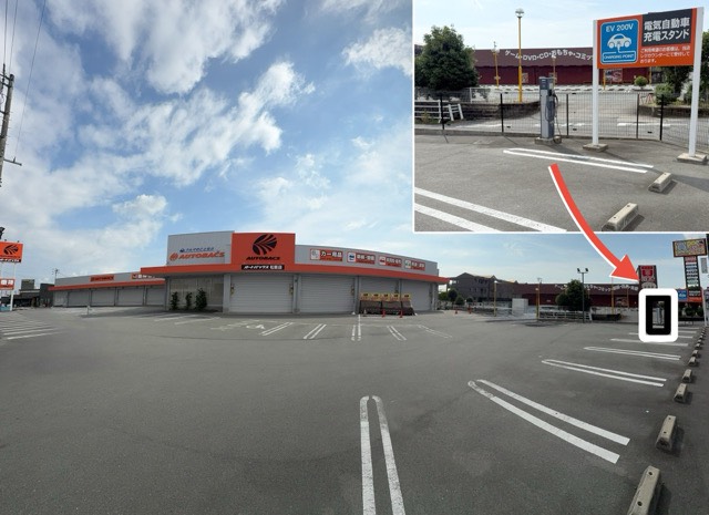 敷地に入って、右側の道路よりにあります。文書と写真追加 オートバックスで最近更新されたのものは記憶にあまりないですが、充電器を更新するならば、有料でエネチェンジのものが良いです。 いろんな支払いもできますし、充電カードユーザーにも優しくて非常に助かります。