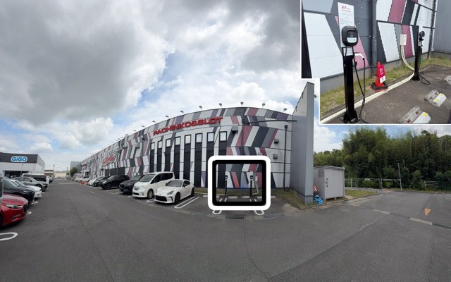 敷地に入って建物の右の奥側(南)の端あたりにあります。文書と写真追加 最近パチンコでの充電はかなり増えてきていると思います。何かに熱中している間に充電は乙です。 充電器番号は右側が若いです