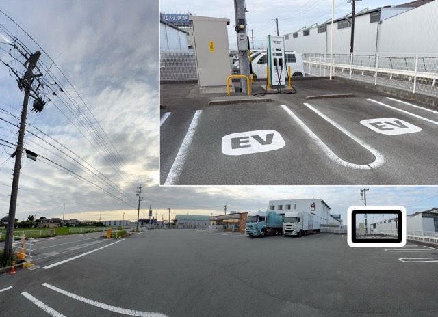 店舗の裏側に新しい50kwh の充電器が設置されています。