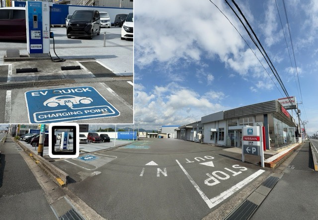 [急速充電器] 設置場所:屋外展示場横 [普通充電器] コンセントは店舗の営業時間内のみお使いいただけます。 日産車限定。