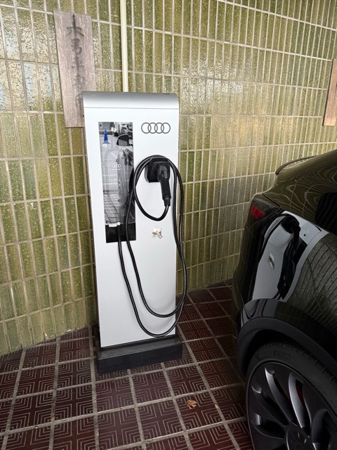 要事前予約。 フロントにて要受付。 充電器は宿泊の方のみご利用いただけます。 [Audi チャージングサービス 普通] 普通充電器はアウディデスティネーションチャージングですが、アウディ以外のお車でもご利用になれます。 最大出力8kW
