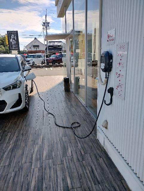 駐車スペースが広くていいです。充電器は東光高岳製。 近くのマックスバリュで買い物しながら充電を待ちます。