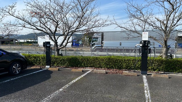 設置場所:駐車場左奥 90kWの充電器が1基(2台同時に充電可)あります。 ★データチームより★ 最大出力90kWは、お車が対応しており、かつ1台で充電した場合の参考値です。
