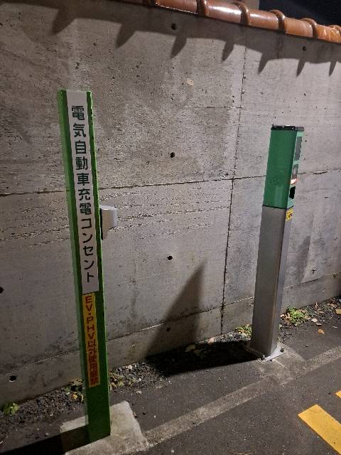 出力2kw出ています。入り口から2番目のスペースにコンセントがあります。停め方は道路からバックで入庫します。入り口側に大きな車がある場合は注意が必要です。 コンセントのある場所を最後まで空けてもらっていたのでとてもありがたかったです。