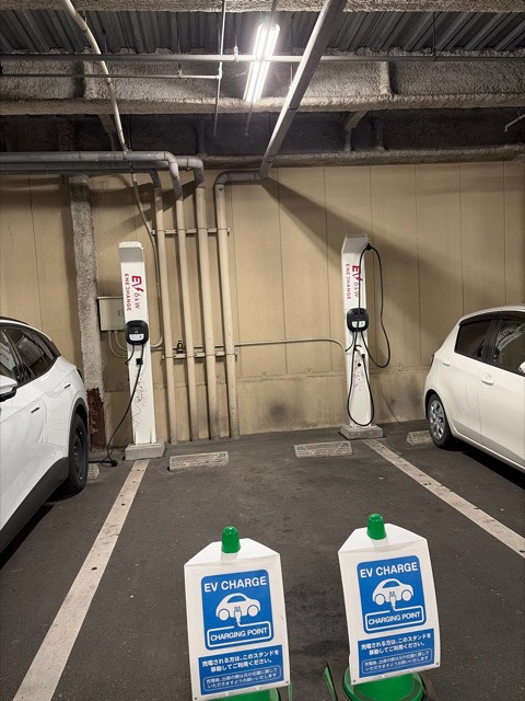 • 充電できました。 有料駐車場ですが、スーパーが朝8時から開いているので、買い物とJQカード特典で安く駐車できました。