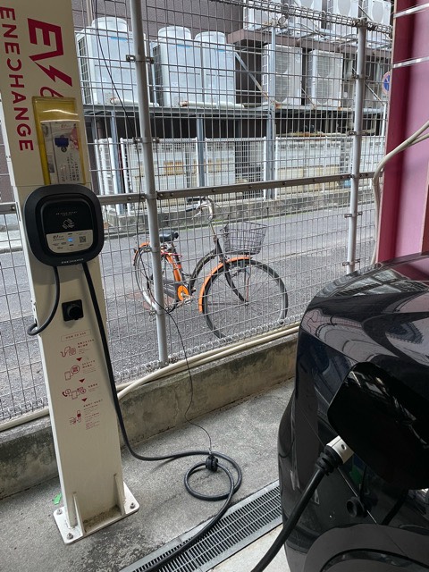 充電できました。 有料駐車場ですが、スーパーが朝8時から開いているので、買い物とJQカード特典で安く駐車できました。