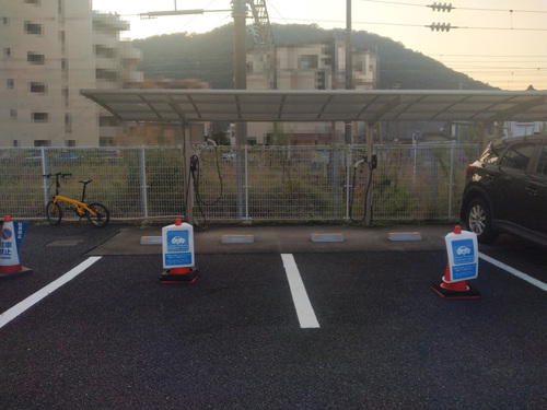 表示系が一切無くインジケータのみが頼りだが、ガンをさしてカード認証後充電が開始された。南延岡駅が近いので電車好きなら日豊本線の電車を眺めつつ充電を待つのも一興。