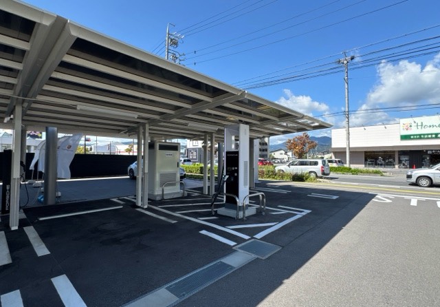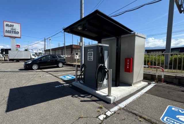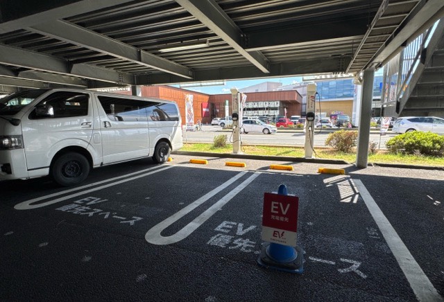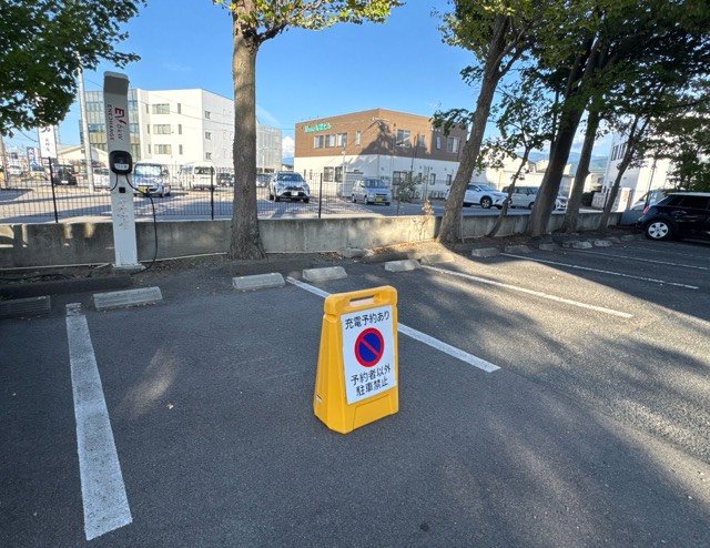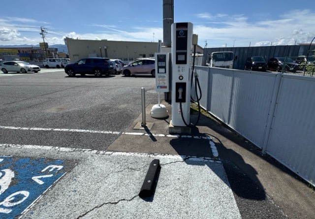 設置場所:立体駐車場1階、国道沿い店舗側の車室にEV充電器があります。 どなたでもご利用いただけます。 最大出力6kW