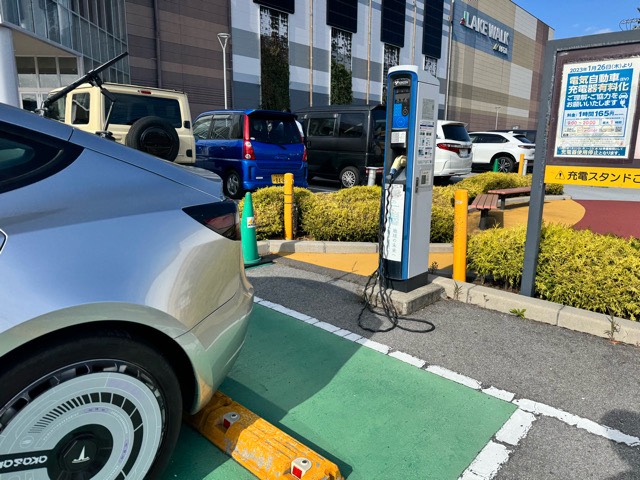 場所は悪くないがテスラのJ1772アダプターだと機器側に嵌め込めず充電できません