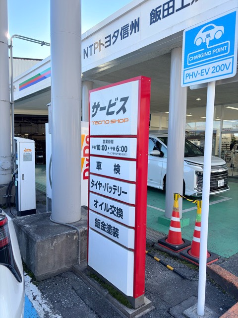 使用時は本社(0265-28-2800)へ電話にて要事前連絡。 スタッフが不在でお電話での連絡がつかない場合はご利用いただけません。 テスラ車はご利用いただけません。 充電30分まで。